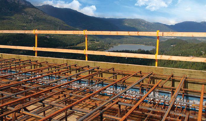 Cantilevers impart high rotational and shear forces, especially in the mountains of western Canada due to the district’s snow loads of 176 pounds per square foot, compared to design loads of 134.3 psf in low-lying Vancouver, which is 200 km to the south. The designers needed cantilevered structures that could not only carry those loads, but also meet seismic requirements of the region.