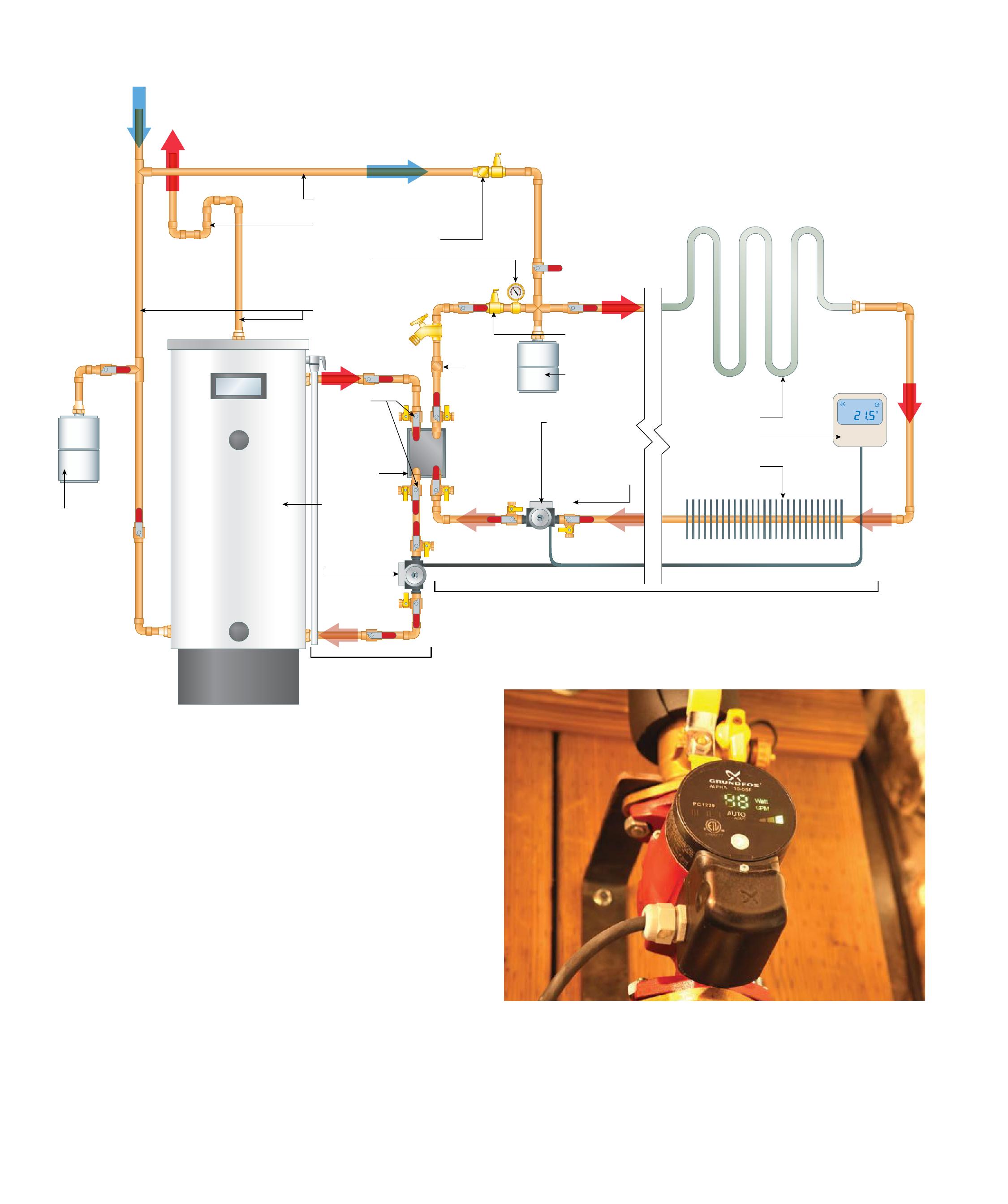 an LED screen so you can monitor flow rate and current draw. Simpler is better, and getting multiple uses from a single appliance is always good. These are the advantages of a tankstyle water heater as part of a space heating installation. Just don’t let anyone tell you water heaters aren’t up to the job. cc