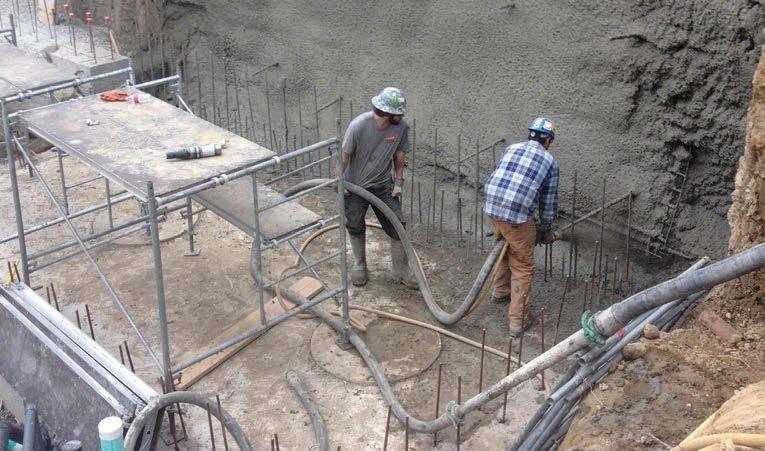 The client had lived on the site since 1998 in a two and a half story house built in the mid 1930’s. After demolition, a serious water drainage issue arose that needed to be addressed immediately. Roof runoff from the home next door ran through downspouts, flowed across the driveway and emptied into the excavated area being prepared for concrete forming. There was potential for water to fill the hole, destabilize the soil, and possibly collapse the neighbor’s driveway. “We had to do something because we were going to be open for a few weeks,” said Cumming. “I came up with the shotcrete shoring idea. We set anchors and rebar back into the bank under the neighbor’s driveway combined with metal mesh on the side, just like a swimming pool.” Cumming describes