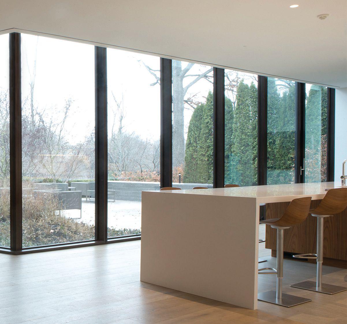 Note the one-inch wide linear grills on the ceiling above the window walls. Each grill is about four feet long, with a dummy grill alongside for visual continuity.