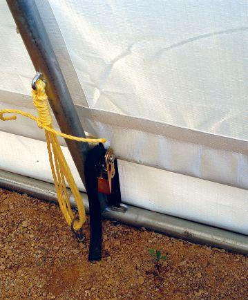 secure it shut. Many shelters also rely on the door being closed to give the structure racking resistance during strong winds. My own shelter came with bungee cords for keeping the door closed under normal conditions, plus ratcheting strap clamps for cinching the door down extra tight in a windstorm.