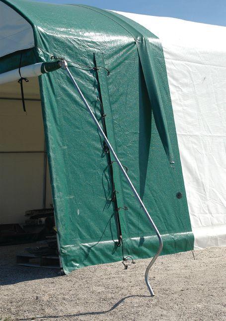 As you’re shopping for a shelter, there are some optional features you should know about. The most valuable in my experience is having roll-up doors at both ends, not just one. Having access to both ends makes it much easier to put stuff in and get it out. Another thing to consider is optional hold-down straps that go over the shelter, anchoring into the ground on each side. Not all companies offer this, but it delivers an added level of strength and wind resistance.