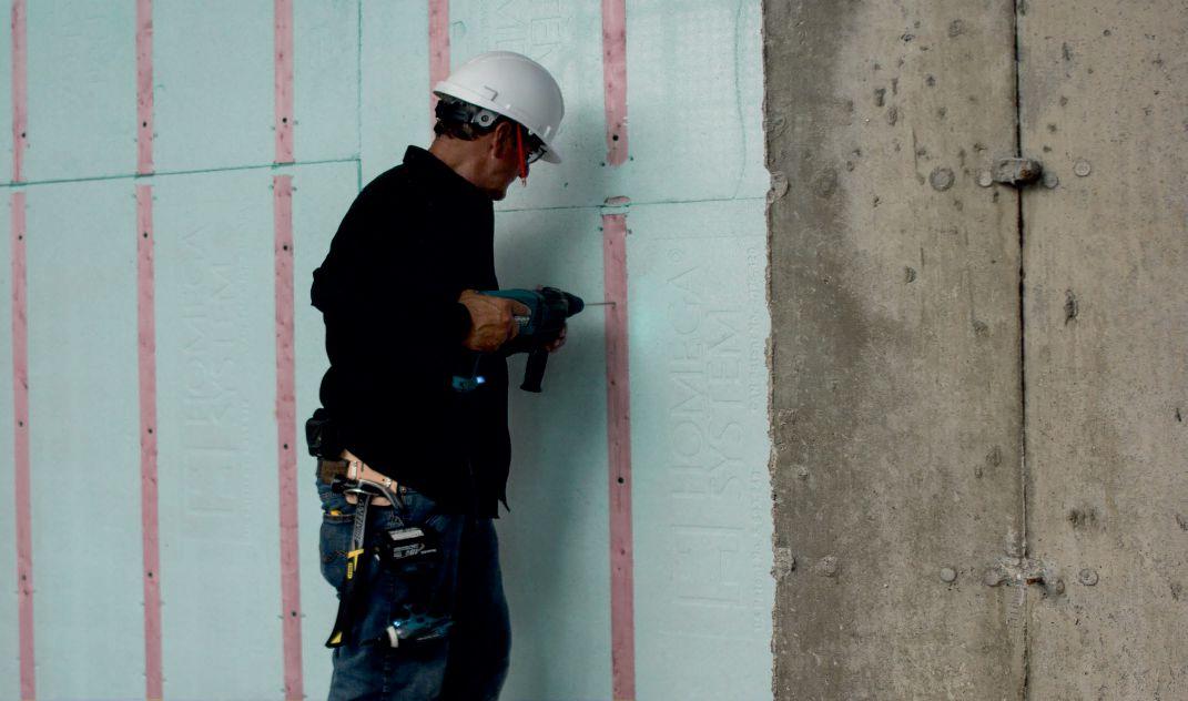 Existing floor penetrations can be sealed and insulated by directly applying 1.5 inches of ccSPF to the existing concrete floor. This is also an opportune time to install hydronic heating. If the load-bearing wall needs to be isolated, it’s recommended to wrap plywood with commercial-grade air barrier material and install them before pouring the second concrete floor.