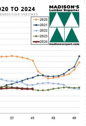 Western Forest Products (WFP) is reducing lumber production at its B.C. sawmills by around 30 million board feet from October to December 2024. The company projects a total reduction of 90 million board feet for the year, which represents approx-