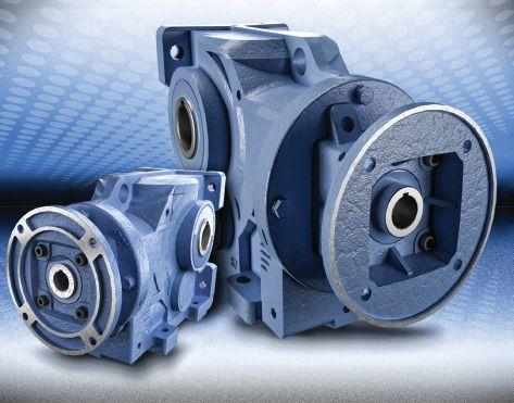 AutomationDirect IronHorse HBR series of helical bevel gearboxes combine a helical gearset with a bevel gearset to create an output that is perpendicular to the input. The gearboxes have a hollow shaft output and accept double or single shafts. Dual and single output shaft kits are available. Helical gears offer a smoother, quieter operation than most other gear types, the company says. The universally interchangeable compact design is said to ensure easy OEM replacement and provides flexible installation with C-face and TC-face inputs, perpendicular output and 6 mounting positions. Five gearbox sizes support 56C up to 254/6TC NEMA motor frames and 6 ratios are available from 10:1 to 120:1. The helical bevel gearboxes are sized to handle from 1 to 24 hp motors. The helical bevel gearbox series features cast-iron (FCD45) onepiece housings and high hardness alloy steel (20CrMO) pinion and gears.
