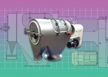 The sanitary model RCM36X9SS Rotary Continuous Mixer from Munson Machinery blends dry bulk solids with or without liquid additions, in-line over long production runs. Intended for dustfree mixing of bulk materials in large volumes, it blends primary bulk ingredients, minor ingredients, and/or liquid additions and coatings uniformly with little or no degradation. It features a stationary inlet, a stationary outlet, a rotating drum with smooth interior surfaces and proprietary mixing flights that impart a gentle tumbling action.
