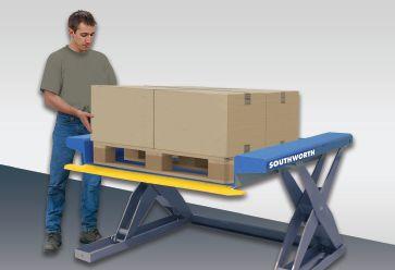 ZLS series floor height lift tables from Southworth have a pan-style platform that, when lowered, sits essentially flush to the floor allowing them to be loaded and unloaded with an ordinary hand pallet truck. Forklift-free loading and unloading has become increasingly important as many facilities have established fork-free zones, and some have eliminated forklifts entirely. The lifts provide workers unobstructed access to loads from all four sides. Once loaded, the hydraulic lift table can be positioned to any height up to 35-3/8 in. The 50 x 48 in platform accepts a variety of pallet and skid sizes, including open or closed bottom. Three models are available with 2,000, 4,000 or 6,000 lb capacities. A 6 in. flexible, high-visibility yellow strip is mounted to the front edge of the platform to protect against toe injuries. Lifting and lowering is controlled by either a footswitch or pushbutton pendant. Southworth Products Inc. www.southworthproducts.com