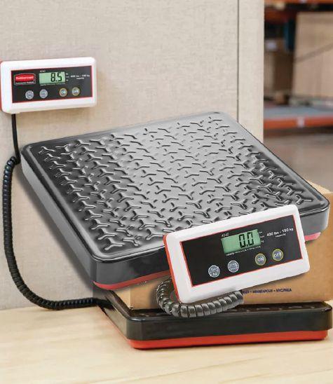 The Rubbermaid model H 479, 400 lb. rated digital receiv ing scale from Uline features a remote, ½ in. LCD display with a wall mounting bracket and 9 ft cord for reading in both pounds and kilograms from any angle. The remote design is suitable for weighing larger objects that might otherwise cover up the readout. In addition, the scale’s tare function, which removes the weight of a container be fore weighing, it is also suitable for that need to weigh up food produce and other ingredients. The receiving scale’s 12 x 12 in. platform has a durable, non skid grid design to prevent packages from slipping off. The scale can be pow ered with either a 110 Vac adapter (included) for frequent sustained use or a 9 Vdc battery (sold separately) if the scale requires moving to a different location for use. An au to off feature helps reduce battery usage.