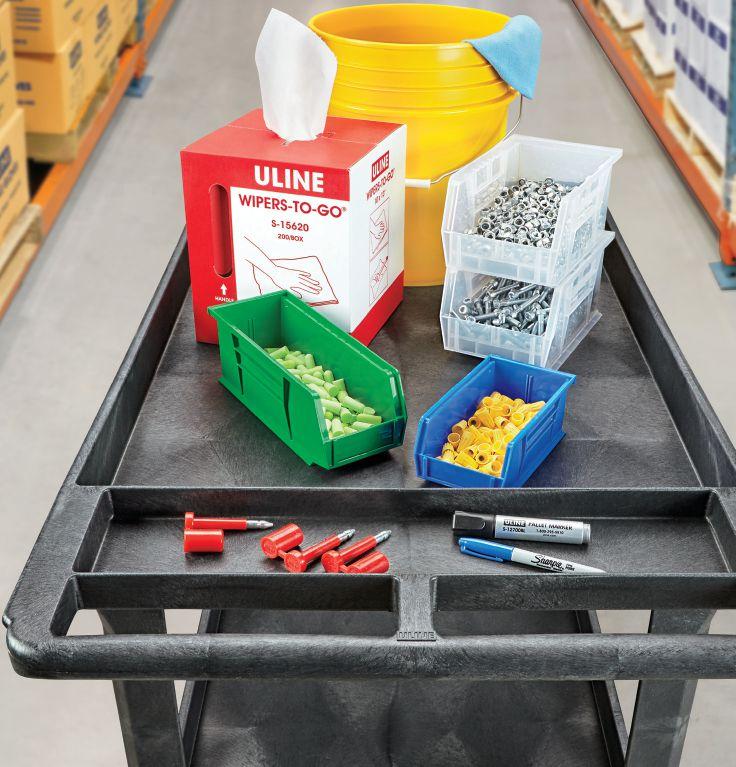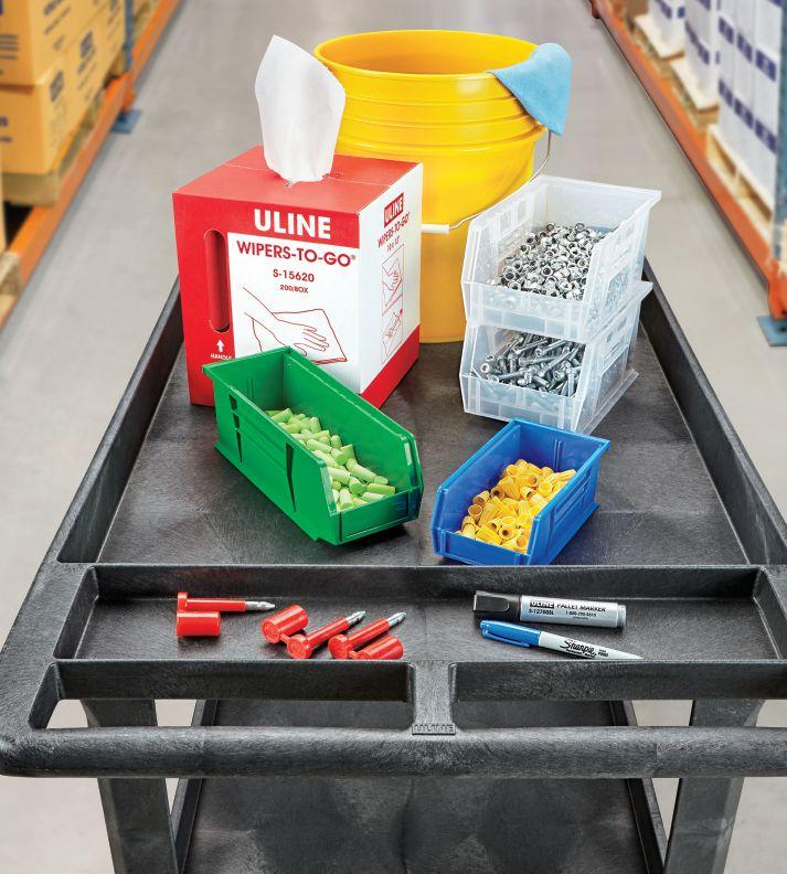 a) Employee desk waste rounded up by the weekend cleaning staff