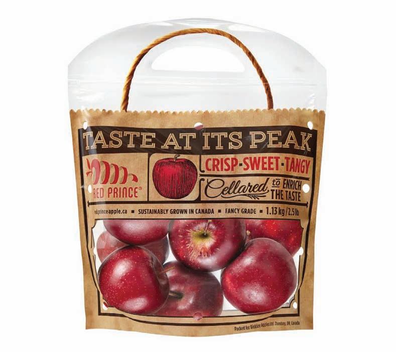 Whatever the case, the recentlylaunched new plastic stand-up pouches used to pack the Red Prince brand apples grown by the Thornbury, Ont.-based grower Binkley Apples Ltd. provide a compelling proof to the notion that packaging innovation does not always have to come in epic, gamechanging breakthroughs: sometimes, a simple packaging sleight-of-hand can be just as effective in compelling consumers to look at their everyday