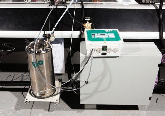 A Robotech Gluing Technology cold glue system with controller that helps reduce adhesive consumption and waste used by Pineberry in many of its machine designs.