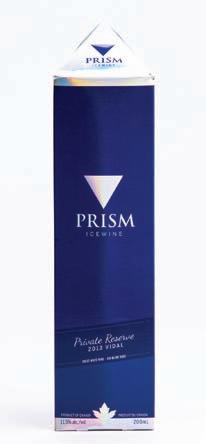 Until that happy day arrives, I resolve to ‘look don’t touch” at the recently-purchased PRISM Private Reserve Vidal ice-wine from Colio Winery of Harrow, Ont.—packaged in an outstanding triangular paperbox printed in stunning vibrant blue on metallic foil, with the metallic silver graphics on the box and the label clearly communicat ing the high-quality essence of this relatively afford able vino, which retails at $24.95 at 13 dedicated Colio outlets located inside large grocery stores across On tario. According to Colio, which developed the prod uct primarily for the Asian export market, the company had to rethink its original red-color design—natur ally paying homage to Can ada—to royal blue in response to feedback received from its customers in Asia. Brilliantly executed by the London, Ont.-based Jones Packaging Design, the beautiful box really gets more beautiful every time I look at it, cheers!