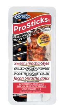 Meat on a stick may not be a new culinary idea, but the recentlylaunched ProSticks line of chicken skewers— created by Montrealbased Expresco Foods for a leading convenience store chain 7-Eleven is boldly elevating the concept to a whole new level of consumer convenience and mobility.
