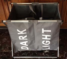 Speaking of laundry, it seems only fair to direct a little praise to my recently-acquired Hollister Laundry Hamper for making this unavoidable household chore a less daunting and frustrating experience than it can be. Not only does it look better than reusable plastic milk crates or other similar improvisations, it provides a real safety upgrade for anyone who has to travel a set of stairs or two to get to the laundry machine. Although it takes a few minutes to assemble, the lightweight collapsible frame allows you to carry the load with one hand, while holding on the railing as you make your way. The odor-resistant bags are evenly divided in two compartments—one for light-colored clothes and one for dark—to remind one not to ruin the fabric colors in the wash, and it easily stores away in the closet folded flat until the next laundry collection cycle. It may not make doing laundry more fun per se, but it certainly helps to make it a less intimidating endeavor.