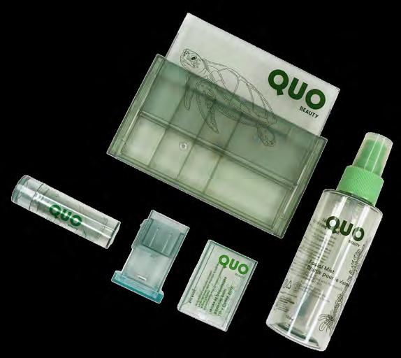 Clockwise from top New flexible packaging format from AG Care is claimed to have achieved significant carbon footprint reduction compared to traditional large plastic bottles; the i Bake special-edition boxes carefully stack up on the display shelves for maximum visual impact; an adorable miniature faux leather purse replica used as a gift-card holder.