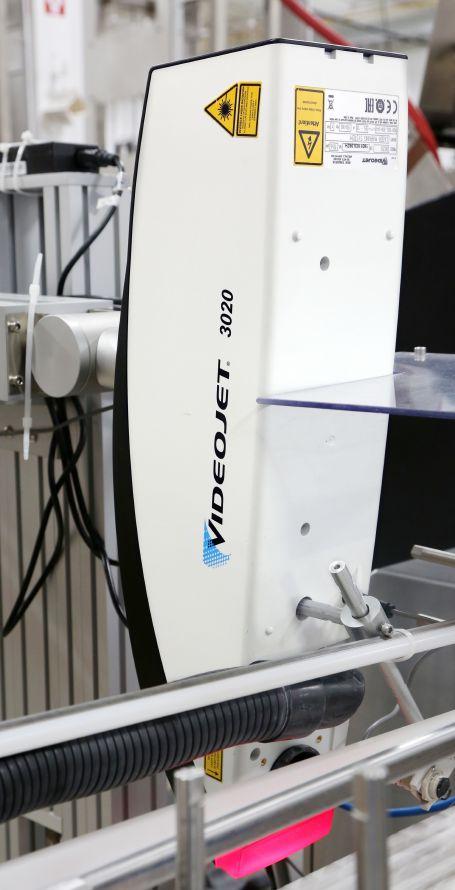 A Videojet 3020 laser-coder applies best-before info and lot code data onto each carton formed by the Genesis carton former from Kliklok-Woodman, now part of the Bosch Group.
