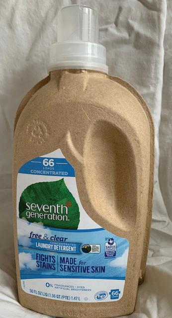 With the climate crisis looming larger by the day, our household is making a team effort to reduce our reliance on plastic packaging in a major way. An thanks to the efforts of companies like Seventh Generation Inc. of Burlington, Vt., it is not a futile ‘all or nothing’ endeavor. This leading supplier of environmentally responsible cleaning products brilliantly projcets its eco-friendly brand image to likeminded consumers with its 1.47-liter container of concentrated laundry detergent packaged in a compostable and/or recyclable outer shell made of repurposed fiber. Oufitted on the inside with with an inner plastic bag also calimed to be recyclable, this packaging uses 66 per cent less plastic than a typical 100-ounce laundry bottle would use, according to the company. On the practical side, the sturdy container—ergonomically shaped for easy handling—sports a convenient twistoff cap that also doubles as a measuring cup for the detergent.
