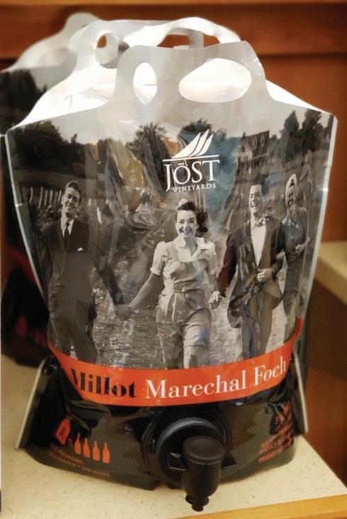 Wine in a bag may not be everyone’s idea of a good time, but it works wonders for Nova Scotia’s Jost Vineyards, whose three-liter bag of Millot Marechal Foch varietal replaces four standdard glass 750-m l wine bottles—representing instant carbon-foootprint reduction on a massive scale. An eminently convenient carrying vessel for picnics and other outdoor gatherings, the sturdy