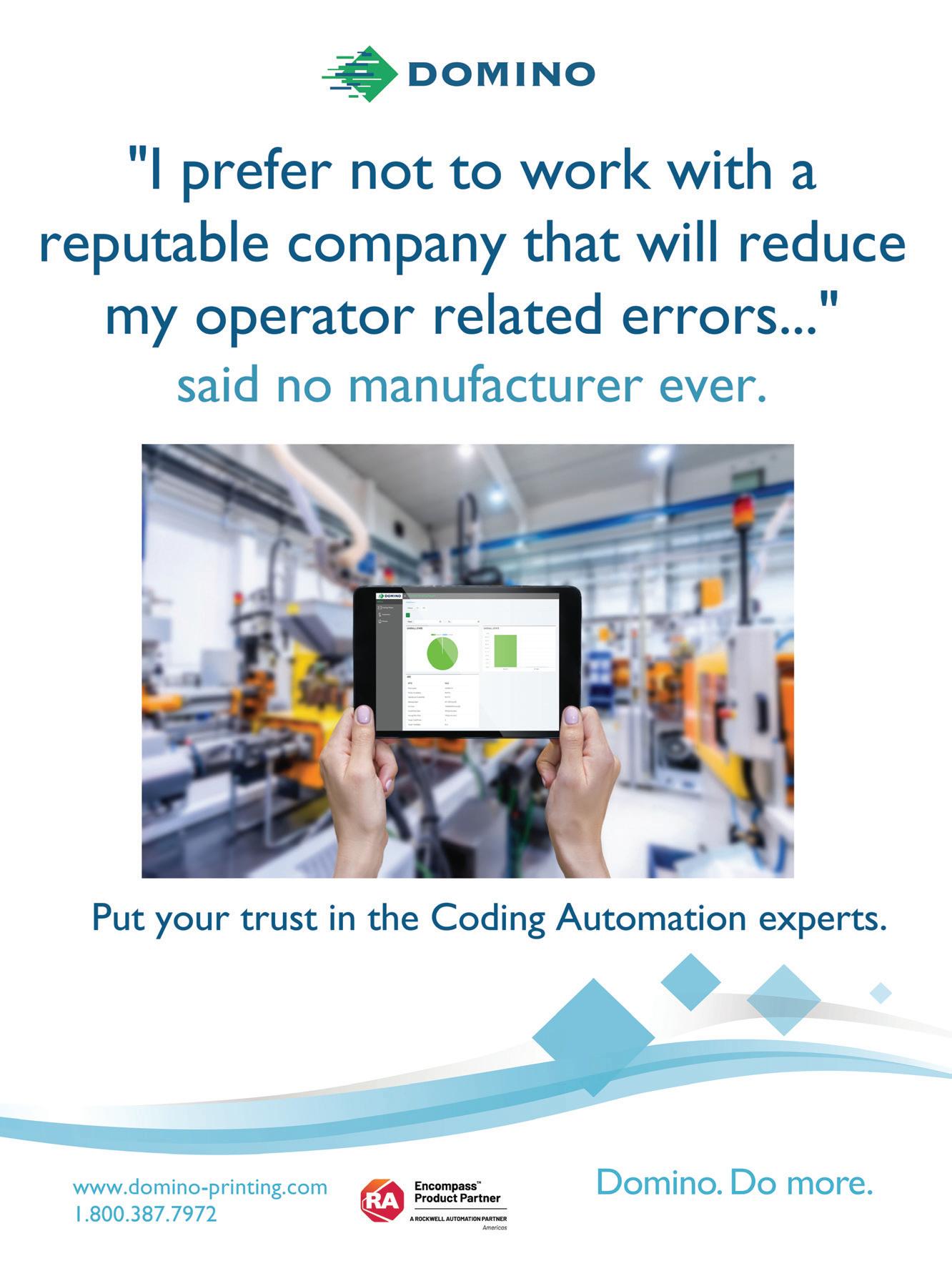 DISCLAIMER: No part of the editorial content of this publication may be reprinted without the publisher’s written permission. ©2020 Annex Publishing & Printing Inc. All rights reserved. This publication is for informational purposes only. The content and “expert” advice presented are not intended as a substitute for informed professional engineering advice. You should not act on information contained in this publication without seeking specific advice from qualified engineering professionals. Canadian Packaging accepts no responsibility or liability for claims made for any product or service reported or advertised in this issue. Canadian Packaging receives unsolicited materials, (including letters to the editor, press releases, promotional items and images) from time to time. Canadian Packaging, its a iliates and assignees may use, reproduce, publish, republish, distribute, store and archive such unsolicited submissions in whole or in part in any form or medium whatsoever, without compensation of any sort.
