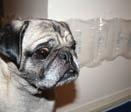 One of the first things we did after that fateful weekend was set up a system of bumpers to protect him from head-against wall collisions. After trying a few things to little success—towels taped to the walls seemed ineffective, while foam floor padding was just too unsightly—we finally found salvation in packaging. Manufactured by the Toronto-based Polyair Inter Pack Inc., the clear plastic film void-fill packing cushions—reclaimed from a series of online shopping excursions—turned out to be the perfect bumper material for our limited apartment floorspace. Attaching them at the pug’s head height to the walls throughout our apartment with double-sealed tape now allows Palmy to gently bounce off these remarkably resilient air pillows as he goes about his business without any lasting harm to his physical well-being or pride, sometimes with unintended humorous consequences.