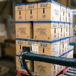 Wrapper Tornado series orbital stretchwrapping machine, which was custom-designed to unitize insulated foam refrigeration panels that approach eight feet in height when stacked and palletized for shipping. Standing more then 11 feet tall (picture above), the recordsetting setting TAB Wrapper Tornado features a 115-inch-diameter wrapping ring to secure palletized loads to their pallets as single units by wrapping the plastic film 360 degrees under and around the entire load—eliminating the need for using large crates, banding and other containers and fasteners for improved protection, safety and stability during storage and transport. Remarkably, the mammoth-sized stretchwrapper was delivered to the end-user client’s site this past summer fully pre-assembled and programmed for plug-and-play operation, according to TAB Industries.
