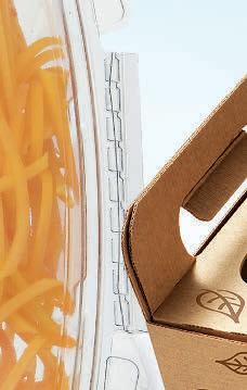 been the fine fare from Toronto-based Butter Chicken Roti, a relative newcomer to the franchised fast food industry. If you’ve never heard of Indian-style roti, imagine a bounty of rich, spicy curry, wrapped in a thin type of naan bread, served steaming hot ... pure deliciousness! While BCR’s roti is definitely fantastic, what really struck me about the presentation was the branded cardboard serving container it came in. Traditionally, Roti typically comes in a generic aluminum container with a cardboard lid kept in place by the folded edges of its aluminum bottom. These edges can be pretty sharp and have led to more than a few finger cuts while trying to open and reseal the lid. Not so with BCR’s roti box, which folds and locks at the top to deliver their signature “How Spicy do you like it?” mantra. The lively brown-orangeand- yellow color scheme of the branding graphics also works remarkably well to add a bit of spice to an otherwise boring paradigm of fast-food delivery containers.