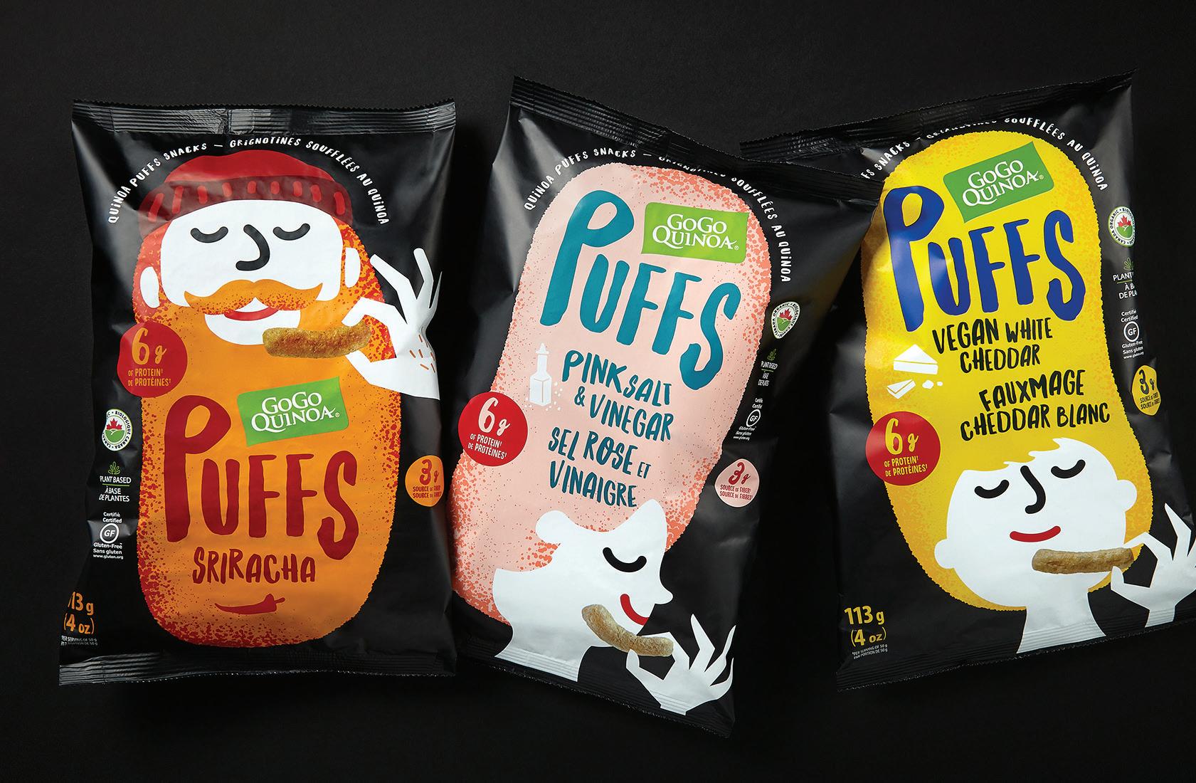 Designed to attract a young consumer, GoGo Quinoa Puffs is a bold, healthy and fun brand of plant-based snacks with a short list of healthy, organic and gluten-free ingredients.