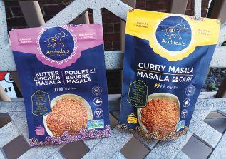 I recently came across a couple of really cool and tasty spices at the neighborhood Sobey’s store, namley the Arvinda’s brand Curry Masala and Butter Chicken Masala blends packaged in 45-gram stand-ups. They’re small enough to almost store in your back pocket, meaning great space utilization in the pantry, with the contents of both poushes packing a real culinary punch that goes a really long way with just a little sprinkle. Contents of both carry quite a culinary punch with a little bit going a long way. Both blends are made in Canada from domestic and imported ingredients by Arvinda’s of Mississauga, Ont. With self-life about a year for each, the eye-catching packages are printed with enticing colorful design, with helpful curre recipes displaed on the back.