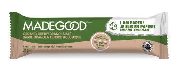 Launched during the designated Earth Month this past April, the new curbside-recyclable wrapper broke new ground in the product category by using Amcor’s AmFiber material—a paper-based laminate made with FSC (Forest Stewardship Council)-certified fiber—to package the new MadeGood Trail Mix bars. Compared to traditional bar wrap, the package reduces the amount of virgin plastic by 77 per cent, and it has been certified by Western Michigan University to meet repulpability standards necessary for recycling.