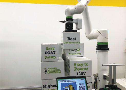 The FANUC model CRX-25iA cobot offers robust 30-kg payload capacity to enable its use in growing number of palletizing applications.