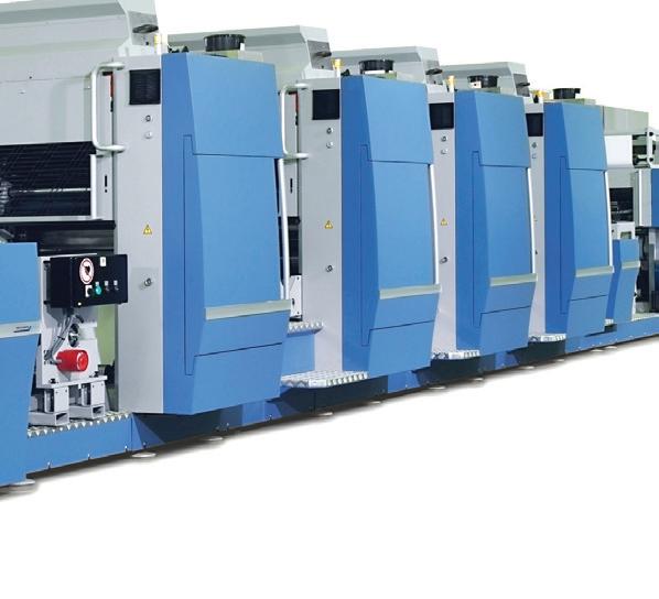 The Alprinta V size-variable web offset press is exceptionally well suited to the production of exible packaging and labels. Virtually any print length can be produced. To change printing size, there is no need to change the complete printing insert, it suf ces to change the carbon ber cylinders.