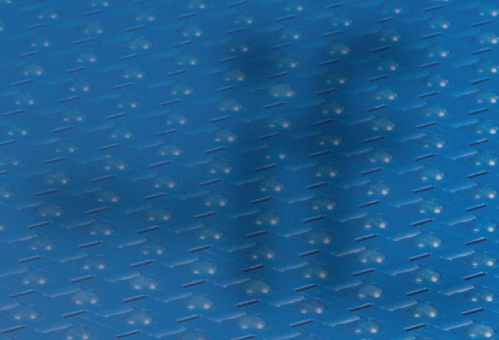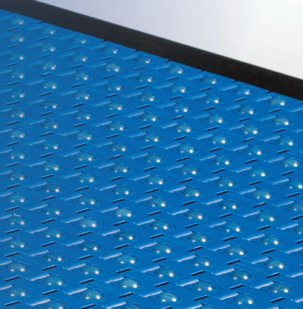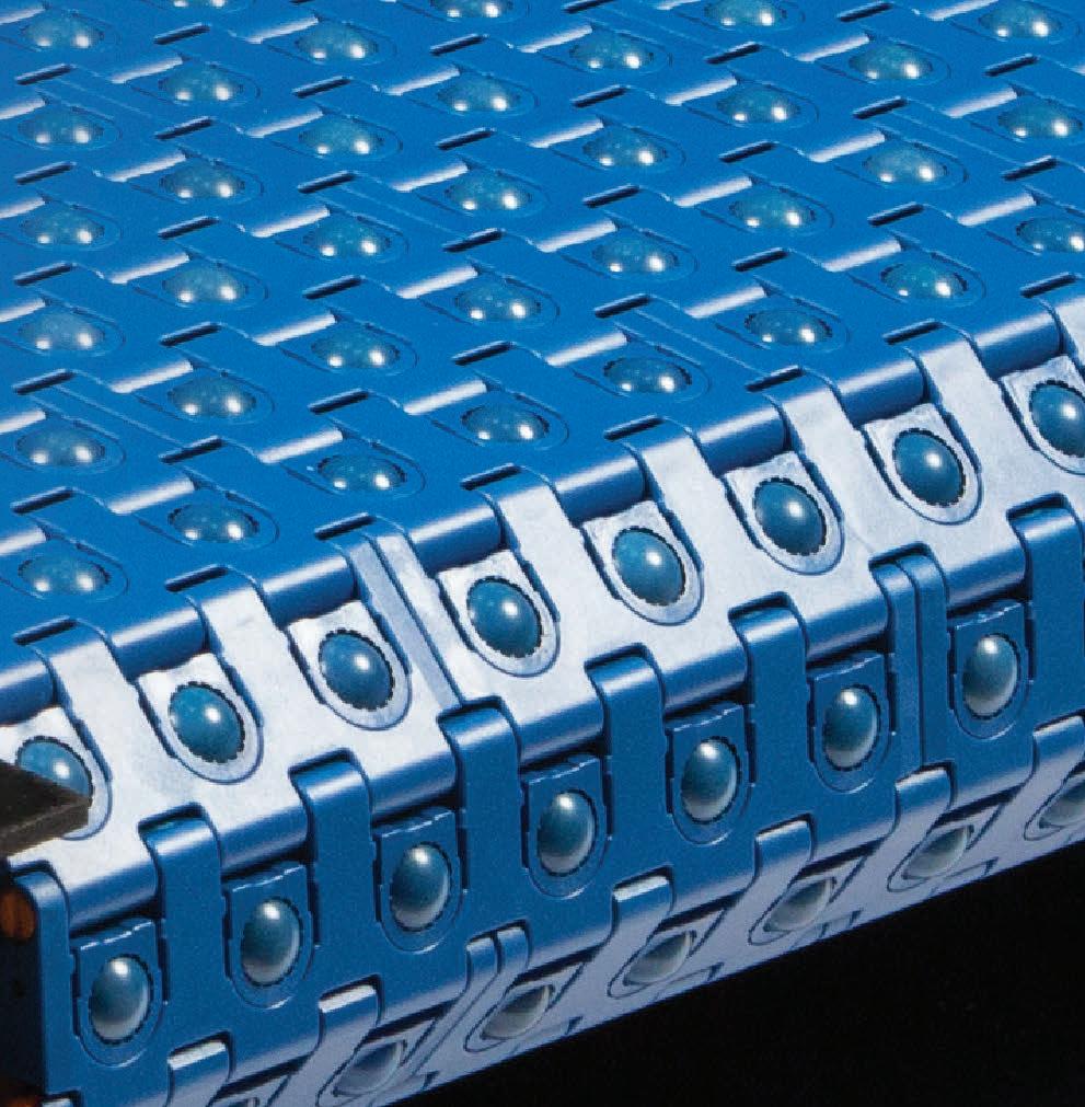 MODSORT utilizes System Plast® 2253RT Roller Top Belt featuring a 1-inch on-center sphere array, allowing very small packages to be moved. Motorized Drive Rollers and controls allow flexibility in wiring, the ability to move everything from exceptionally small polybags to boxes, and safe, efficient, quiet and low-maintenance operation.