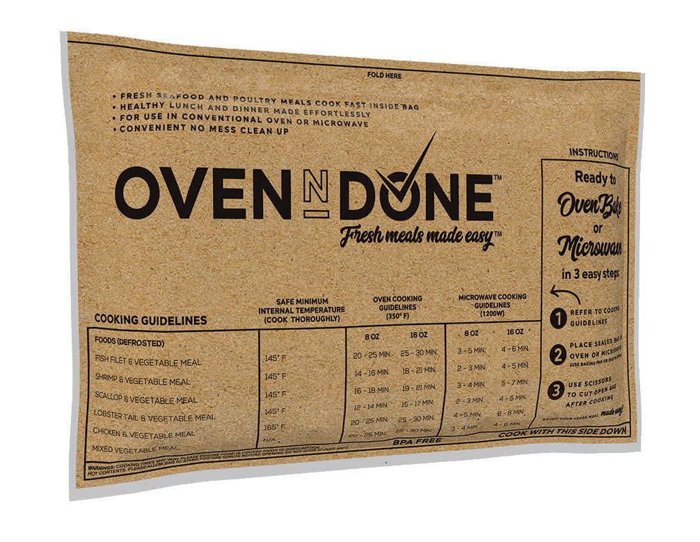 In fact, our teams spent several months in the lab developing our one-of-a-kind Oven N’ Done Bags –Fresh Meals Made Easy line of packaging. (See Picture)