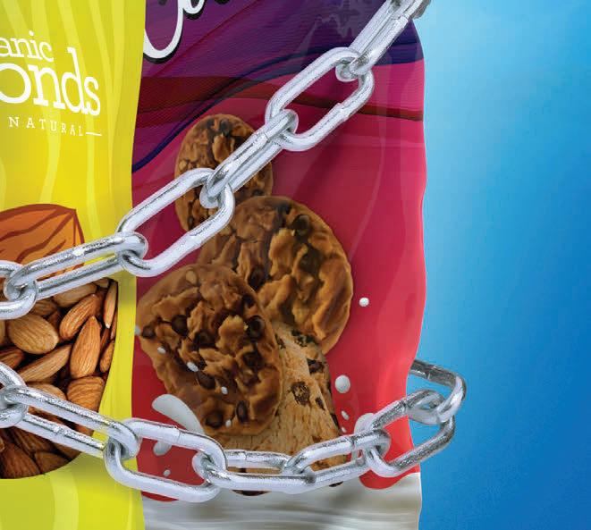 now available to consumers, Transcontinental Robbie (Lenexa, Ks.) developed ‘snacking on the go’ pouches designed for in-store packing of fresh snacks—both salty and sweet.