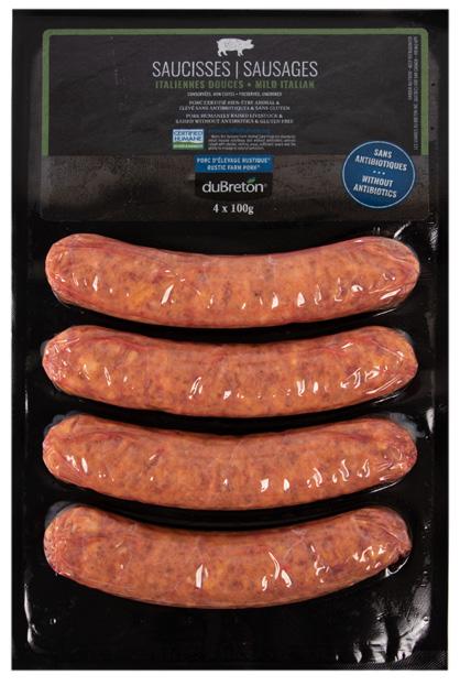 Produced and vacuum-packed at a duBreton plant in Rivière-du-Loup, the premium-quality sausages are made only with shoulder muscles, according to the company, without adding any meat fillers or byproducts.