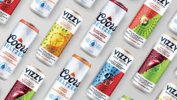 act as a really great filter brand to bring people into the category,” says Malcolm, “whereas Vizzy primarily targets a seasoned spritzer drinker looking for di erentiation on the shelf, which the brand delivers with our unique dual flavors and our standout packaging.”