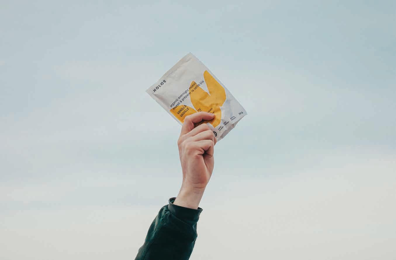 COVER HOLOS Foods co-founder Samuel T. Scofy holds up 100-precent recyclable stand-up pouches of his company’s HOLOS brand overnight muesli mix. Cover photography by Xavier Girard.