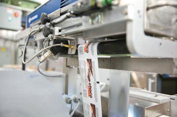 Designs Ltd. model AST 148DC heat tunnel that forms a tight skin around the product, a Videojet 1510 small-character single-head continuous inkprinter adds barcode data to the surface of the film.