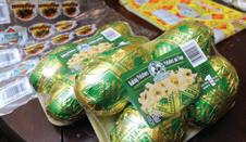 A model 1510 small-character continuous inkjet printer from Videjet Technologies cleanly applies barcoded data onto whole coconuts shrinkwrapped in pre-printed Clysar lm.