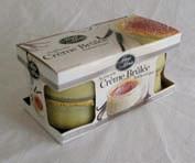 a delicate layer of singed sugar coating. My joy was made complete a few days after with the discovery of the Marie Morin Authentic Crème Brûlée packages in the freezer section of my neighborhood supermarket. Produced by Marie Morin Canada in Brossard, Que., these classy four-packs ooze with packaging elegance befitting the delicious contents, with the paperboard sleeve’s cutouts providing an unobstructed views of the glass cups and custards, deftly complemented by the use of cream tones, natural colors and uncluttered vanilla-bean graphics to project the sense of refined indulgence. The reusable glass cups go from freezer to table after defrosting in the fridge for eight to 12 hours, with their peel-off foil lids ensuring a neat and tidy opening for each and every serving.