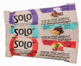 Having set an exceptionally high bar for nutritional excellence with its comprehensive range of lowglycemic and gluten-free SoLo Gi energy snackbars, Edmonton-based New Era Nutrition Inc. has launched three new unique flavors made with the same healthy blend of slow-release carbohydrates, premium proteins, healthy fats and dietary fibers to help active Canadians get a sound boost of energy without the ‘spike-and-crash’ stimulation found in many energy-boosting food-and-beverage products out in the marketplace.