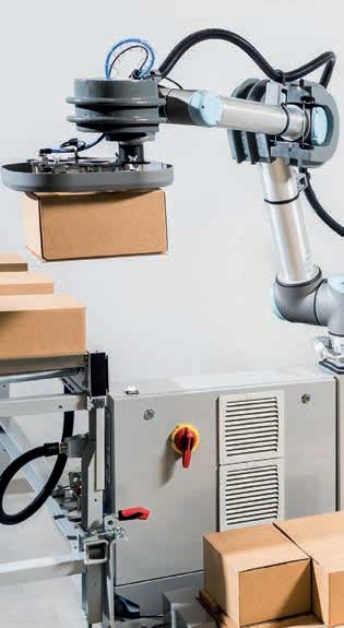 The standardized RC10 palletizing cell from FlexLink is compact, quick to install and easy to configure. The use of a collaborative robot significantly reduces the footprint, by over 50% compared to cells with industrial robots.