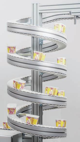 Spirals offer the flexibility to transport various types of containers and packages, regardless of shape, size, or material. This adaptability allows all kinds of packaging companies to introduce new products or package designs without significant modifications to their conveyor systems. Spiral conveyors can also be equipped with specialized attachments, such as product orientation devices and rotators, to ensure proper alignment and presentation of containers throughout the production process. This capability enhances line flexibility by accommodating a broader range of products and packaging formats – without the need for configuration changes between products.