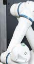 Hand-guided programming allows users to direct teach points without a pendant for quick implementation of the robot system, and a plug and play tool flange based on EN ISO-9409-1-80-6-MB connects a wide variety of end-of-arm tooling for fast and simple deployment. A thru-arm category 6 Ethernet cable, I/O cable and dual 5 mm ID air lines eliminate external utilities while offering fast, safe