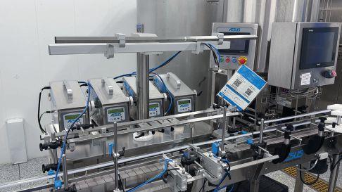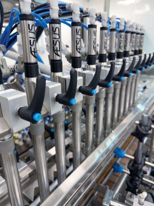 Close-up of the new bottling line delivered by Aesus to venerable Quebec honey farmer Miel Dubreuil as part of the company’s expansion into the beverage co-packing business.