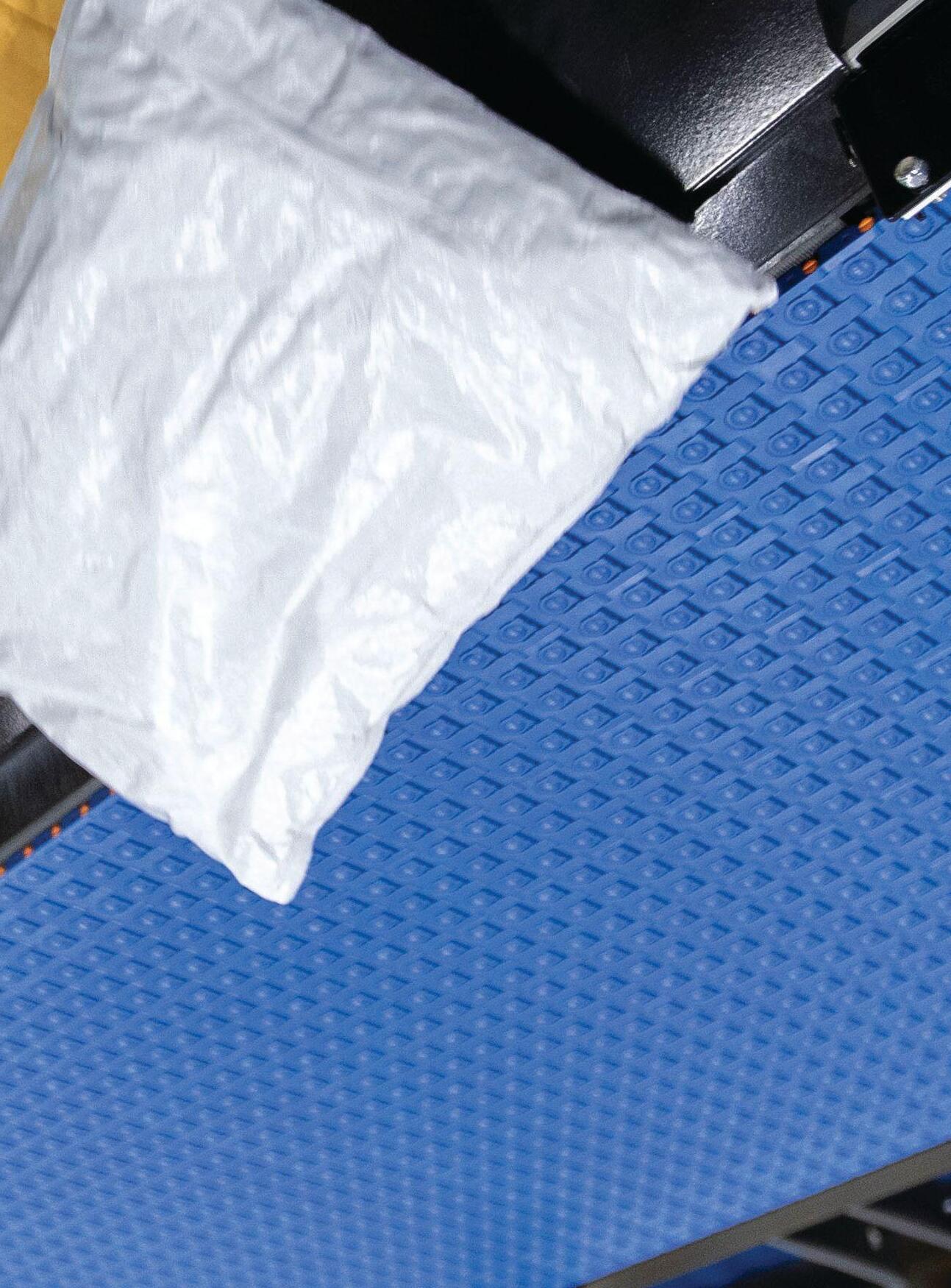 Very small packages? Polybags? Not a problem for ModSort divert and transfer conveyor modules! The ModSort module can do left and right sorting on the fly for a wide range of package types and sizes weighing up to 50 pounds (23 kg). It is safe, quiet, versatile and saves energy.