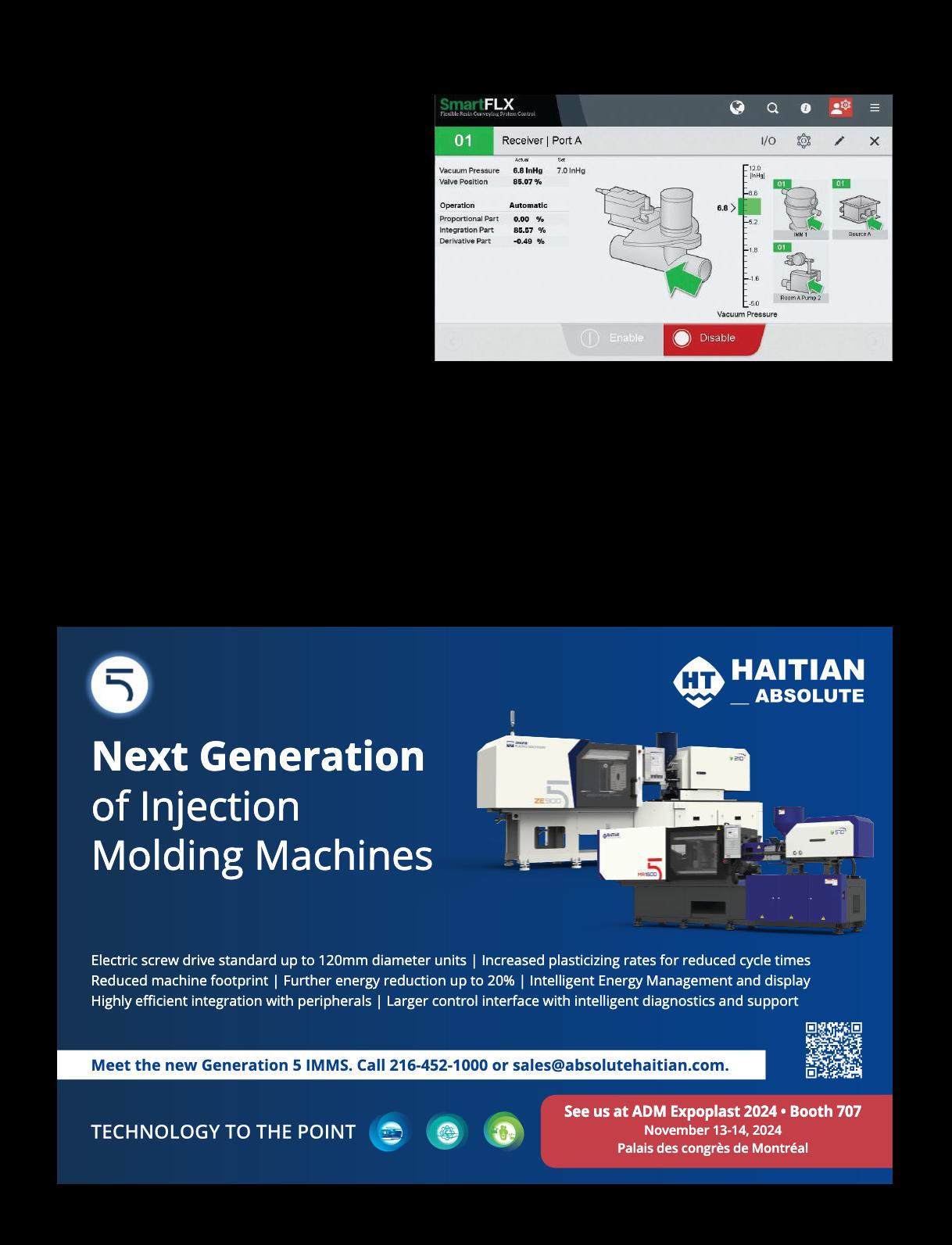 The MiVue Industrial Inter net of Things, or IIoT, package from ACS was on display to show connectivity capabilities to auxiliar y equipment, including conveying systems, blenders, granulators, chillers, temperature control units, control hoppers, and additive feeders New features and