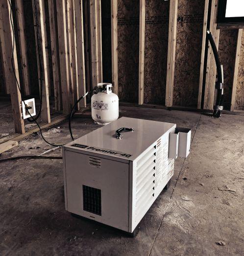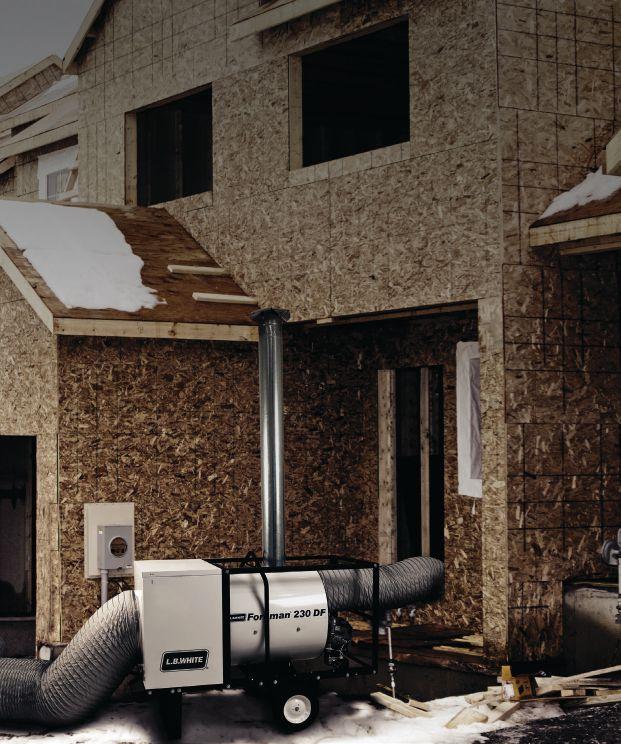 scale construction with larger cubic volumes, it is ideal for hospitals, highrises, big-box stores, distribution centres, wood frame multi-family low rises, and other applications. The IAQH 1800 is capable of heating large spaces and creating a temporary environment that controls temperature and humidity reduction via heated makeup air. The ability to utilize a single or reduced number of larger heaters to heat entire spaces reduces the total cost of projects, making for a leaner construction environment based on reducing fuel burn, ideal construction temperature and humidity. Its modulating design ensures required horsepower for high output heating but can modulate down to 150,000 BTU. The product has limited burner cycling, and its control system offers uptime even in minus-40 C conditions. The product is engineered to provide constant circulation for the structure and uses several automatic make-up air strategies, depending on the location and ambient conditions. It is capable of controlling temperature and humidity better, while