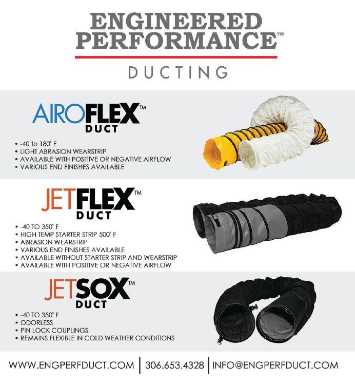 Standard high-temperature ducting, which rental stores already have in stock, is sufficient. Additionally, standard ducting provides for more versatility in directional heating. Its “push through” fan protects critical components