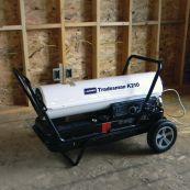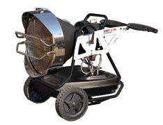 TBX mobile warmers, available in two sizes, have a thermostat with a positive off and fan-only positions with a range from 40 to 100 F. Ten-inch wheels allow for easy rolling over obstacles on a job site to the spot where heat is required.